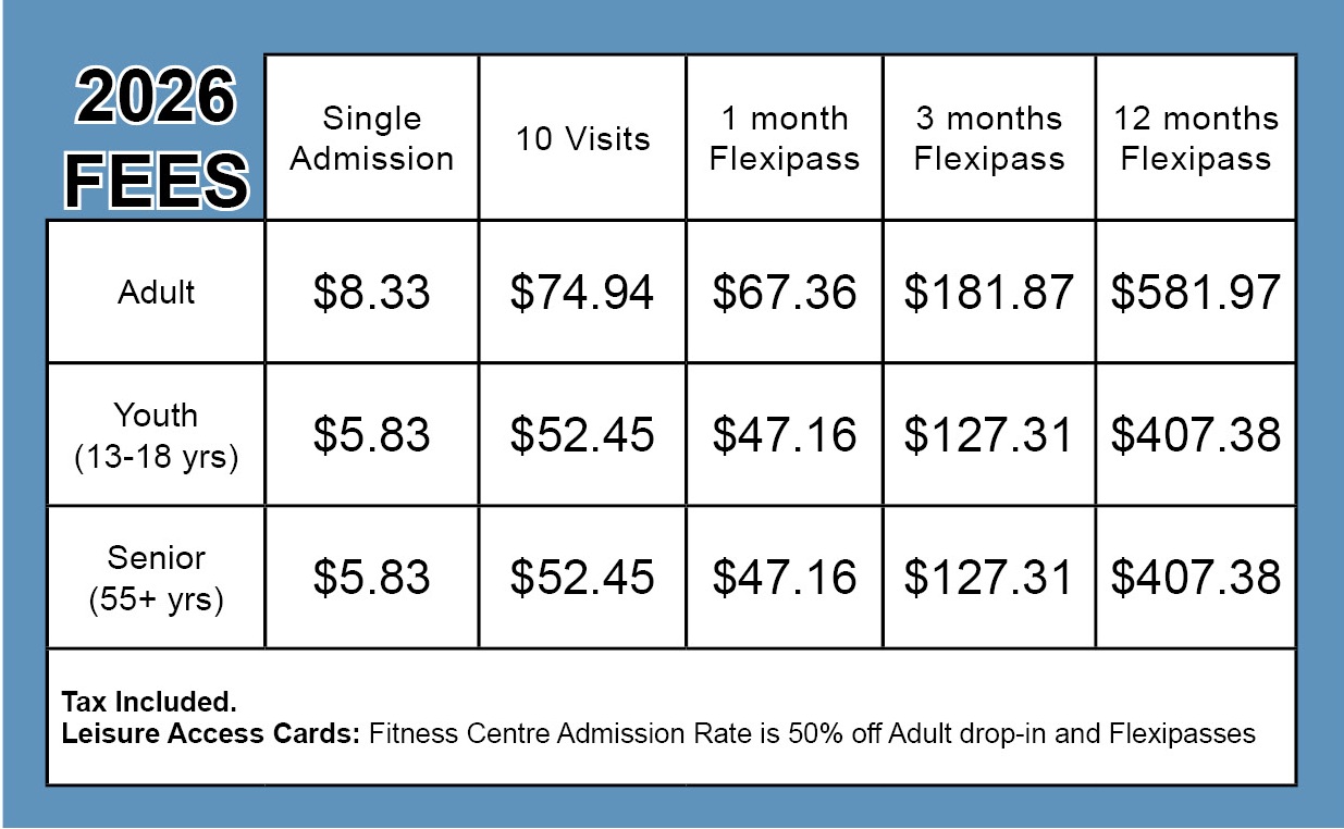 The Fitness Centre can be accessed with a ten-visit pass, or Flexipass on your OneCard. Learn More >