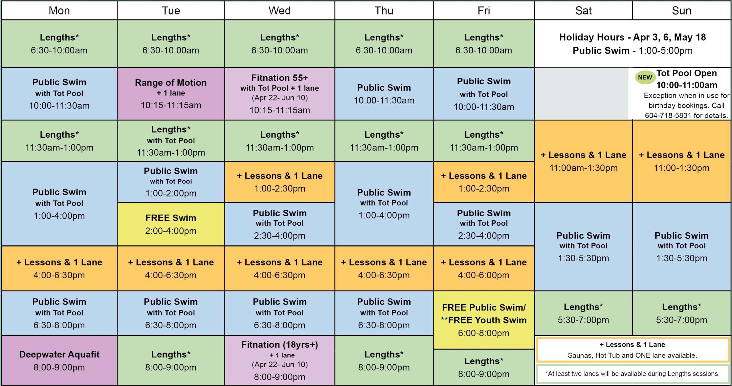 *Youth Swim (10-18yrs): Apr 10, 24 | May 8, 22, | Jun 5, 19